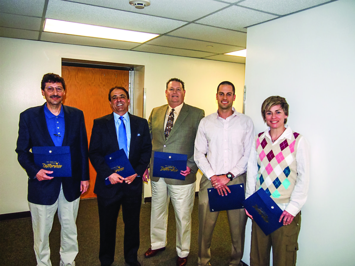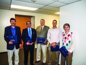 Pictured (l–r) are five of the six alumni named to the HES departments new Wall of Fame: John Simone, Charles Inverso, Charles Miller, Tony Rienzo, and Tracy Radler.