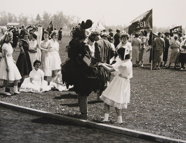 It appears this photo was taken at Homecoming or Reunion (note the flags with class years in the background), but we don’t know when, nor do we know who is pictured—and we’re really curious why someone was dressed up in a chicken suit. Have an idea? Then shake a tail feather and write us at magazine@tcnj.edu or The Editor, TCNJ Magazine, Department of College Relations, PO Box 7718, Ewing, NJ 08628-0718.