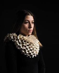 Artist: Nikolette Sciancalepore ’22 “My piece is titled ‘Bloom,’ and gives the effect of a blossoming flower. It brings attention to human development and reflects how I’ve grown as a person. I used the summer reading book from my freshman year at TCNJ. Now I am a senior, so this particular book felt very meaningful to me while also strengthening my concept.”