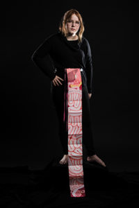 Artist: Lily Santo ’23 “I strapped an accordion fold book to my stomach, so that when it was opened it looked as if my guts were spilling from the book. I took specific time and effort to make the guts look anatomically accurate when the book is worn.”