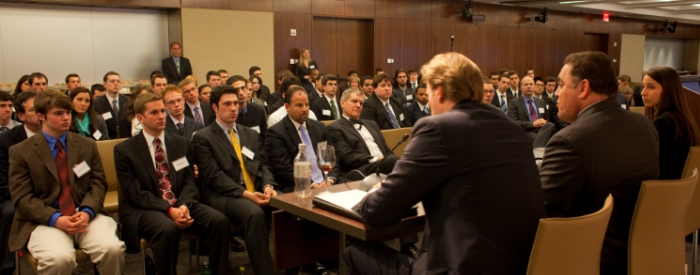 For the second consecutive year, Guy Chiarello ’81, CIO of JPMorgan Chase, welcomed 83 TCNJ business students to a finance forum at the firm’s Park Ave. headquarters in Manhattan.