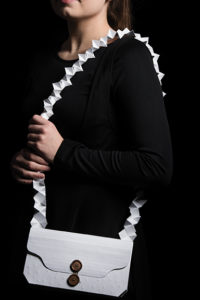 When she started teaching a Book Arts class to art and art education majors, Mackie assigned the project as a way for students to relate to a book in a different way. “We do a lot of folding at first, and looking at structures,” she says. “But the wearable books lead students to be creative with their process and get used to handling paper and what paper can do.”