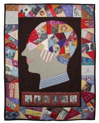 When Nancy Breland’s psychology students would stop by her office for advice or to discuss a difficult paper, their gaze would inevitably gravitate to a quilt hanging on the wall. Scattered on and around a silhouette of a man’s profile on the quilt are smaller images of thinkers and concepts from the history of psychology: headshots of Sigmund Freud, B.F. Skinner, and Ivan Pavlov; a monkey, in reference to a classic study about maternal love; optical illusions; a bottle of Prozac.