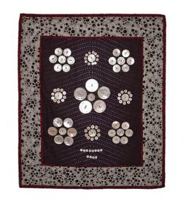 Crazy About Psychology is just one of the quilts that brought together her research in psychology and art. Block Design suggests the red and white colored cubes used in the Wechsler and Binet intelligence tests. Relative Size plays with the classical optical illusion found in textbooks in which an item (in this case a button) appears smaller or larger based on the relative size of items surrounding it. Tropical Fish—which first appears like a gathering of little fish before the eye identifies a large fish because it’s brighter—plays with what’s called value differences, a perceptual principal based on a person’s ability to identify shapes by changes in brightness.