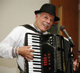 Goldberg said he was exposed to a wide variety of musical genres, particularly klezmer, while growing up. The quadruple-instrument threat—he plays piano, bass, vibes, and accordion—began performing professionally in high school, and since then has toured with numerous bands, played on more than 150 albums, won a Grammy, and appeared at Carnegie Hall five times. He joined Odessa in 1984, taking over the reins when the original leader left a few years later “I kept it going, never knowing where it would lead,” he said. Twenty years later, the group plays weekly shows across the tri-state region and sells CDs to fans as far away as Asia.