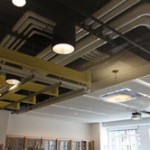 The STEM (science, technology, engineering, and mathematics) classroom includes all of the features typical of the science classrooms in which many TCNJ students will eventually teach, and also includes such “high-tech” resources as proscopes (microscopes that can be projected onto a computer screen), Vernier probe-ware (for measuring temperature, pressure, and speed), clickers, and document cameras. A section of the STEM room’s ceiling was left off to allow students to see the building’s mechanical and structural systems, thus enhancing the learning experience. All elementary, early childhood, special, and deaf and hard of hearing education majors, as well as a number of master’s in teaching students, will use the STEM room, said Lauren Madden, assistant professor of elementary and early childhood education. In the past, the school had to conduct its science methods classes in Armstrong Hall, because Forcina did not have the proper facilities. “We’re very excited that our students now have a ‘science home’ in this beautiful new building,” said Madden.
