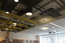 The Education Building was designed to meet LEED Silver specifications, and boasts a number of energy-efficient features, including motion-activated lighting and a chilled-beam system with heat recovery wheels and heat-pipe technology. “This system pretreats the air to reduce the amount of cooling and heating needed to condition the building, and provides free precooling and reheat air to the air-handling unit. The reduction in primary airflow also reduces the amount of electricity used,” explained Lynda Kane, director of planning and campus architect.