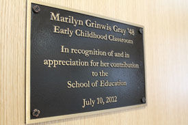 students. The early childhood room is named for Marilyn Grinwis Gray ’48, a retired kindergarten teacher, in acknowledgement of her support of the School of Education, in particular, the early childhood program.