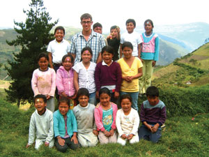Nic Freschi and students from one of the K–3 classes he taught in Ecuador.