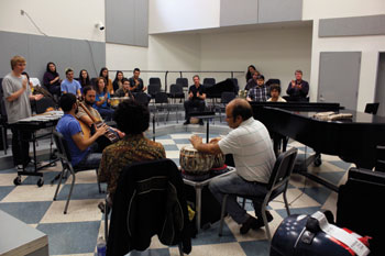 World-famous tabla maestro Abhijit Banerjee (bottom right) taught a masterclass during The Arts in Contemporary India symposium held in October.