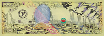Melissa Brown’s mixed media print, "Zero Dollar."