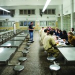 It’s been a long semester for Glenn Steinberg—a soft-spoken scholar with a professorial beard and glasses. He says he likes teaching the inmates, but administrative issues keep popping up, especially around location. At first Classical Traditions was put in the auditorium, then about a month ago, it was moved to the prison cafeteria, which swallows the voices of Steinberg and his students but magnifies every passing garbage cart or jangling set of keys.