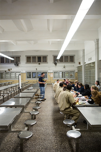 “I definitely was surprised with [the inmates’] preparedness and their ability to understand the material,” says Kevin Alexander, a senior psychology major in Steinberg’s class. “That’s not to say I didn’t think they were going to understand the material, but….several [inmates] in the class consistently say things that make me go, ‘Wow, this guy is just so smart.’ It makes you think, ‘There but for the grace of God go I.’”