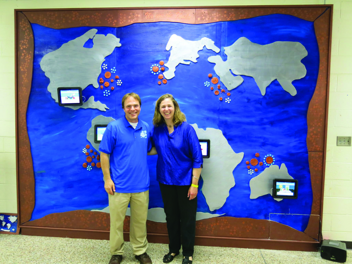 Kuiphoff worked with Bear Tavern fifth-graders to create ZooBurst 3D books about the different cultures they researched. Meanwhile, Nakra taught students in each grade songs that are representative of every continent then recorded the students performing them. The books and recordings were uploaded to four iPads, which were incorporated into the Diversity Mural that Kuiphoff and students from TCNJ and Bear Tavern created in the Hopewell school’s lobby. The ceramic tile mosaic was unveiled as part of the school’s 50th anniversary celebration in May.