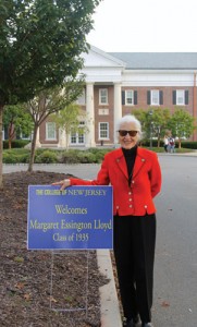 Margaret “Peggy” (Essington) Lloyd ’35 paused outside the Social Sciences Building and surveyed the bustling walkway running toward Paul Loser Hall. “This was all woods and pathways when I went here,” she said, smiling as she recalled the scene. Though she was one of the first students to call this campus home, Lloyd hadn’t visited in years, and she was processing the changes she saw.